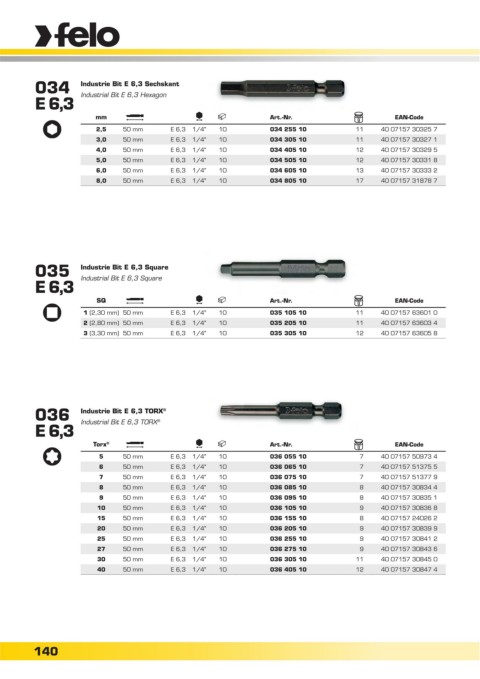 2,5 50 mm E 6,3 1/4" 10 034 255 10 11 40 07157 30325 7