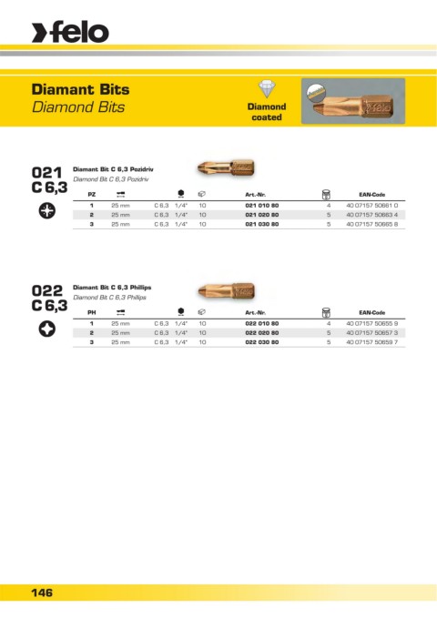 C 6,3 Diamond Bit C 6,3 Pozidriv