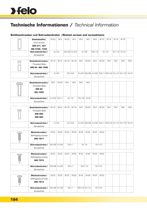 Schlitzschrauben und Schraubendreher /Slotted screws and screwdrivers