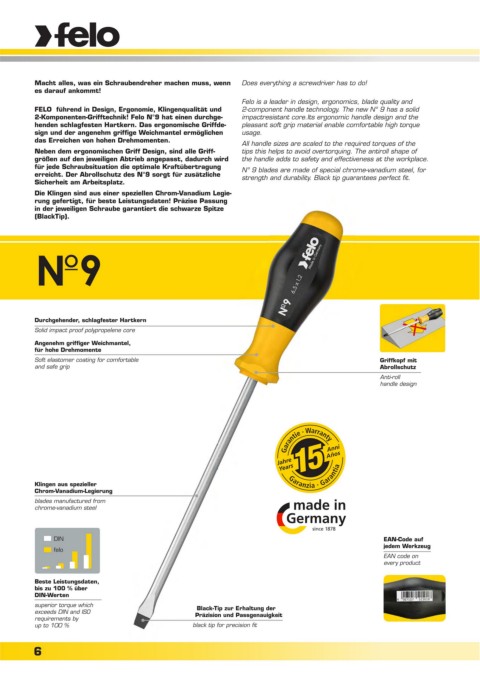2-Komponenten-Grifftechnik! Felo N°9 hat einen durchge- impactresistant core.Its ergonomic handle design and the