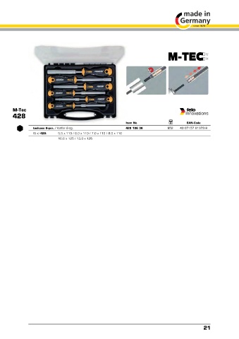 since 1878 M-Tec 428 Item No EAN-Code toolcase 6-pcs. / Koffer 6-tlg. 428 106 36 952 40 07157 61373 8 (6 x) 428: 5,5 x 110 / 6,0 x 110 / 7,0 x 110 / 8,0 x 110 10,0 x 125 / 13,0 x 125 21