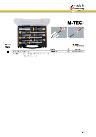 since 1878 M-Tec 428 Item No EAN-Code toolcase 6-pcs. / Koffer 6-tlg. 428 106 36 952 40 07157 61373 8 (6 x) 428: 5,5 x 110 / 6,0 x 110 / 7,0 x 110 / 8,0 x 110 10,0 x 125 / 13,0 x 125 21