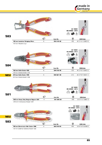 190 mm Electrician’s Side Cutter VDE 6 583 019 40 250 40 07157 64399 5