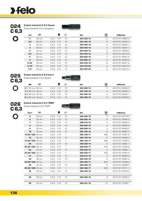 2,5 25 mm C 6,3 1/4" 10 024 250 10 5 40 07157 30253 3