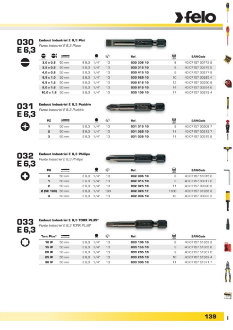 3,0 x 0,5 50 mm E 6,3 1/4" 10 030 305 10 8 40 07157 30772 9