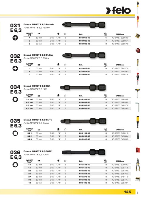 2 50 mm E 6,3 1/4" 5 031 025 40 7 40 07157 62965 4