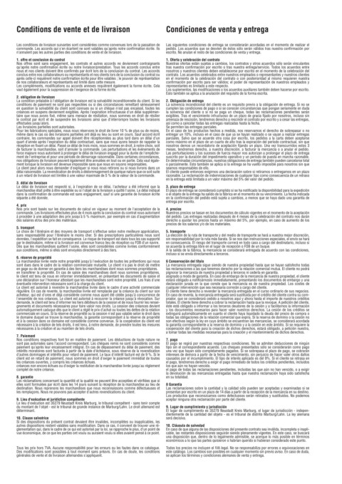 Conditions de vente et de livraison Condiciones de venta y entrega