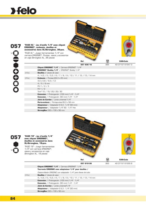 057 "R-GO XL" - jeu d'outils 1/4" avec cliquet