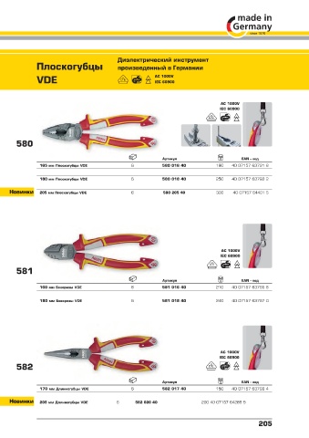 Новинки 205 мм Длинногубцы VDE 6 582 020 40 200 40 07157 64289 9
