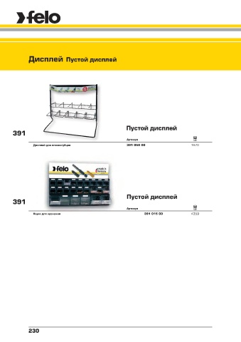 Дисплей Пустой дисплей Пустой дисплей 391 Артикул Дисплей для плоскогубцев 391 058 00 1670 Пустой дисплей 391 Артикул Ящик для хранения 391 015 00 4359 230